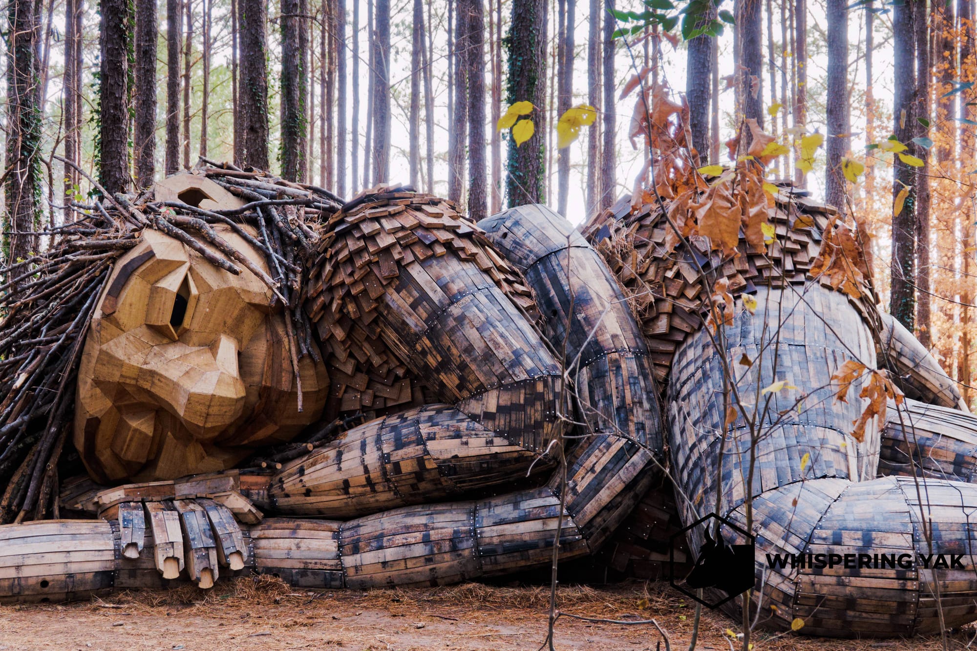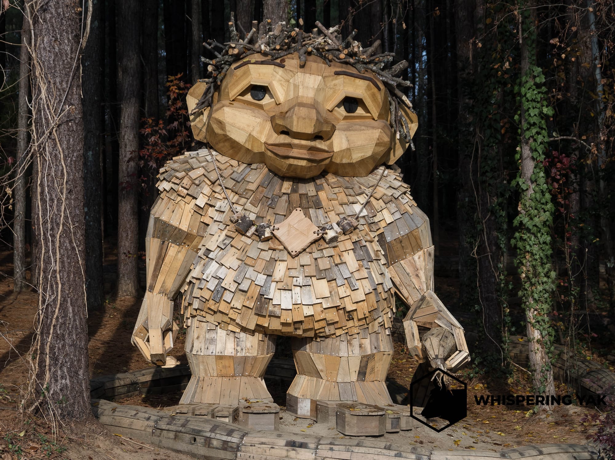 Dambo’s own journey as an artist started with recycling and creation. Growing up in Denmark building treehouses and toys out of discarded materials, he learned to see beauty in what others might throw away. His larger-than-life trolls — including those now at Dix Park — carry that spirit forward, reminding visitors that nature and art can be playful and meaningful at the same time.